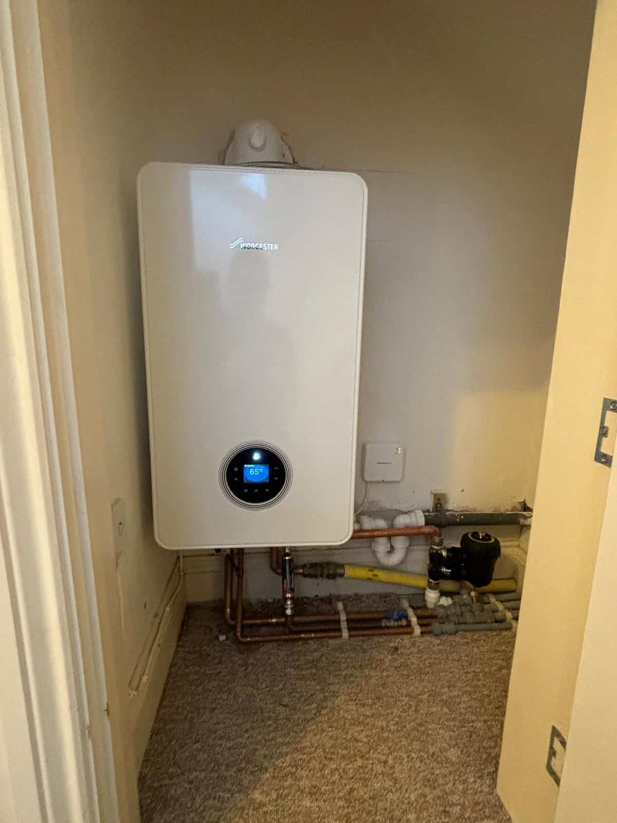 The installation process was carried out with precision, ensuring minimal disruption to the property and adherence to all safety and industry standards. As shown in the picture, the compact and sleek design of the boiler fits neatly into the space, making it both practical and aesthetically pleasing.